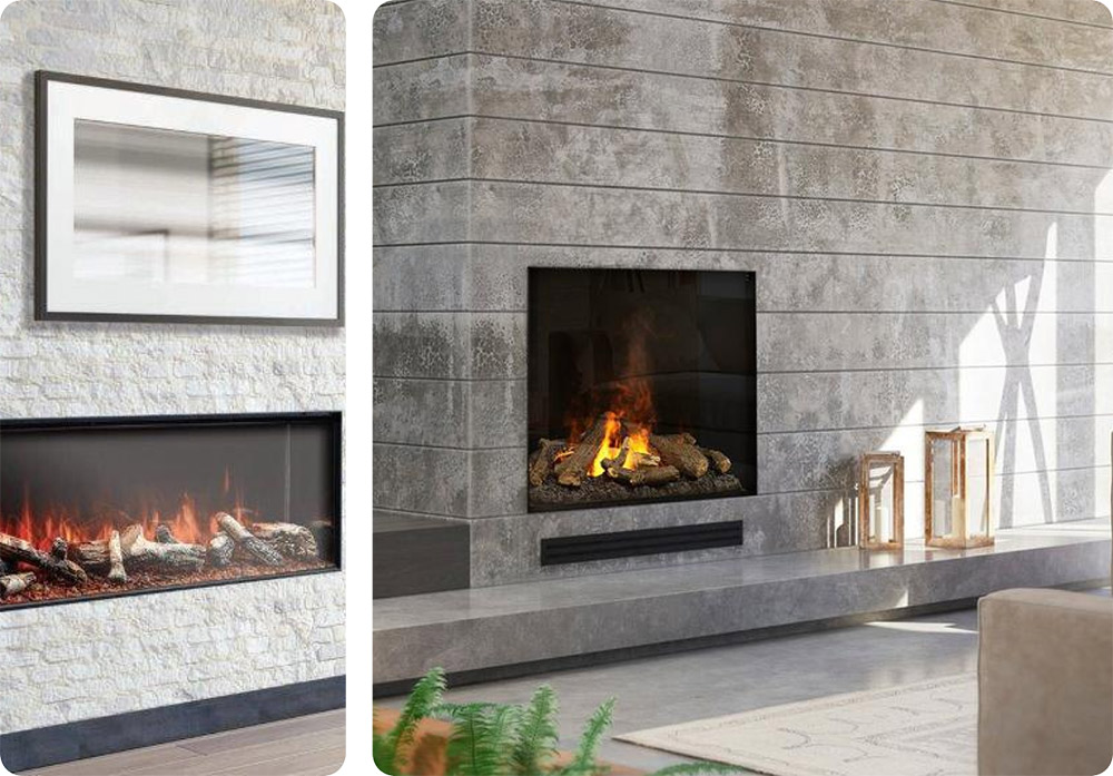 The Weathered Concrete Series blends modern design and industrial charm, creating a bold, stylish backdrop for lifelike flames.